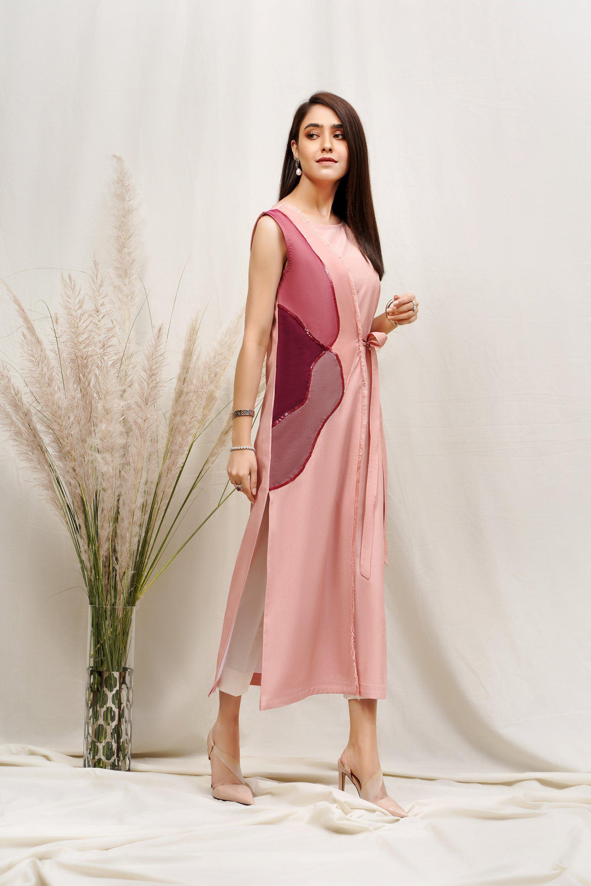 The garment is a four-panel shirt with zipper details on each panel. Tones of lavender purple paired with fuchsia pink to give you a refreshing look!