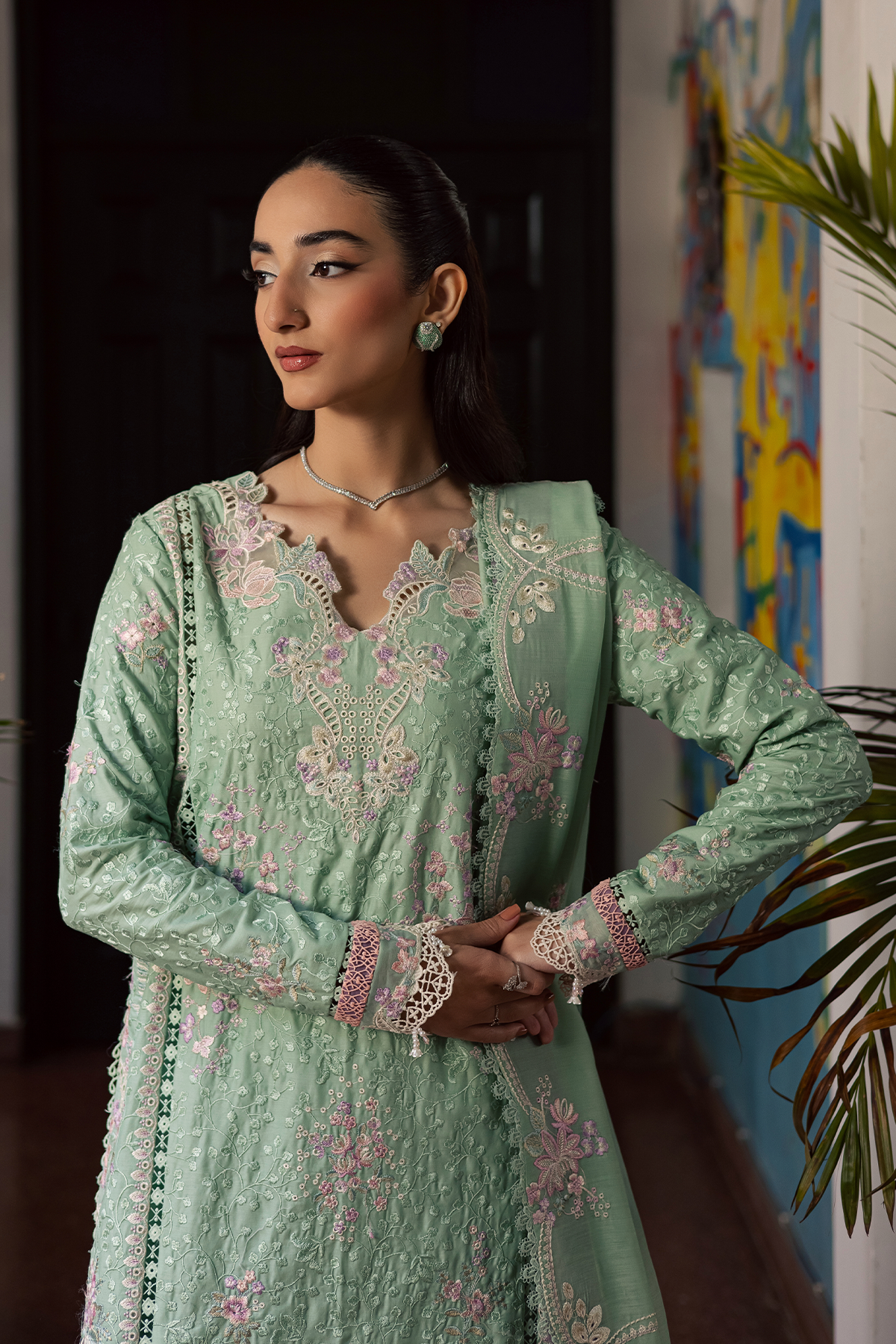 • Embroidered  Front side Left panel    (lawn)  - 1 pc